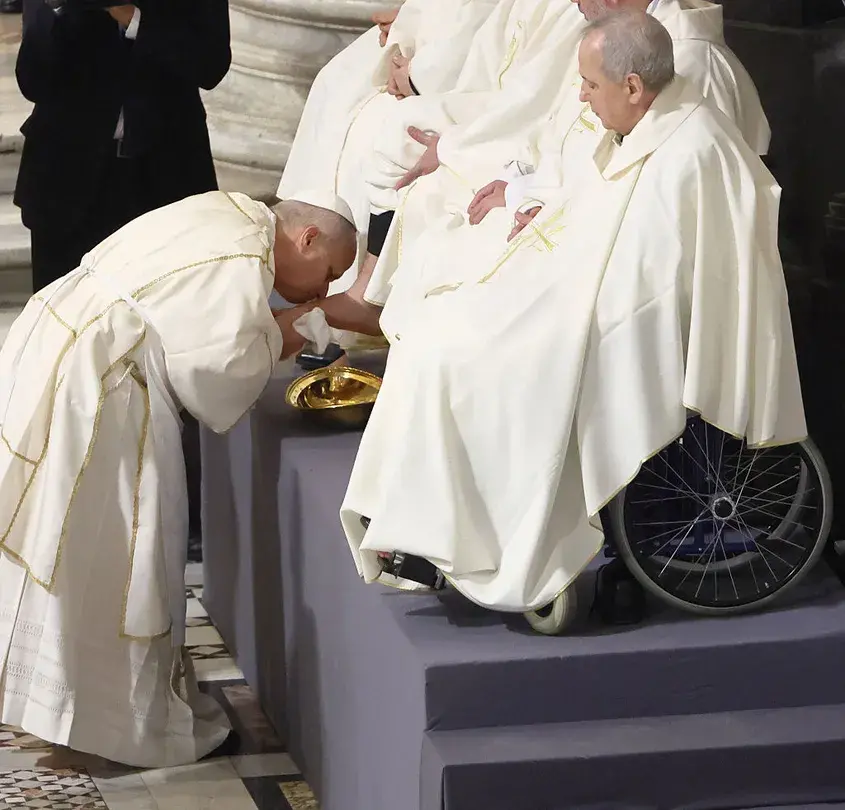 Tой даде началото на празничните церемонии в четвъртък, като извърши традиционния ритуал по измиване на нозете на вярващи като символ на смирение и служба.