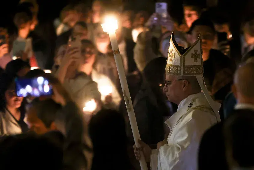 Празникът започна с нощното пасхално бдение – най-святата служба за католиците, символизираща победата на живота над смъртта.